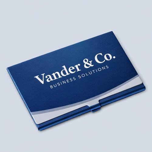 Een eerste indruk begint bij de details. Met onze visitekaartjeshouders bewaar je jouw kaartjes netjes, beschermd en altijd binnen handbereik. Kies uit een lichtgewicht aluminium houder of een luxe metalen variant. Zo maak je niet alleen een verzorgde indruk, maar ook een persoonlijke.