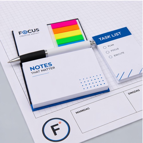 Laat jouw merk letterlijk blijven plakken met bedrukte memoblokjes. Handig voor snelle notities, herinneringen of korte boodschappen. Perfect voor op kantoor, onderweg of als originele weggever. Bij ons stel je ze helemaal naar wens samen: van standaard memoblokken tot luxe varianten met een zachte of harde cover. Onze memoblokjes zijn voorzien van een handige plakrand, zodat jouw boodschap overal blijft hangen. Laat elk velletje bedrukken met jouw logo of ontwerp, in PMS of full color. Kies uit wit, gerecycled of kraftpapier. Zo wordt zelfs een simpele notitie een effectieve merkboodschap.